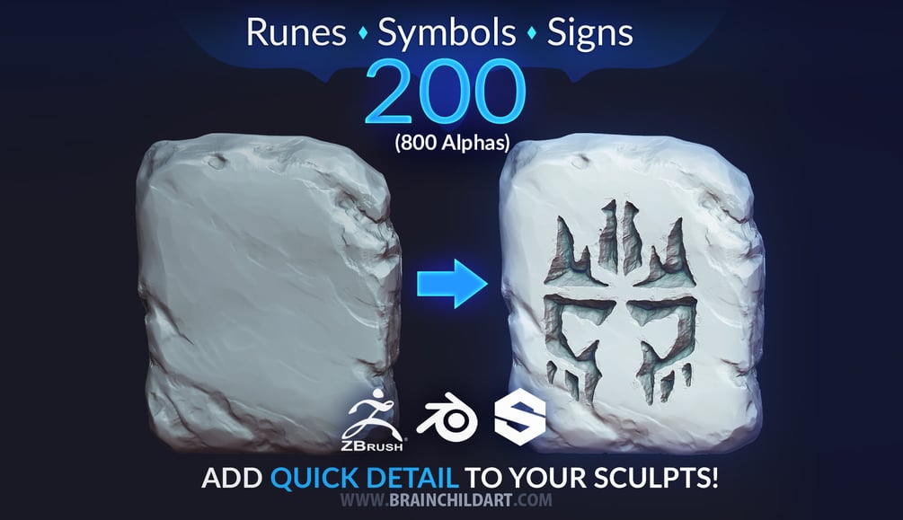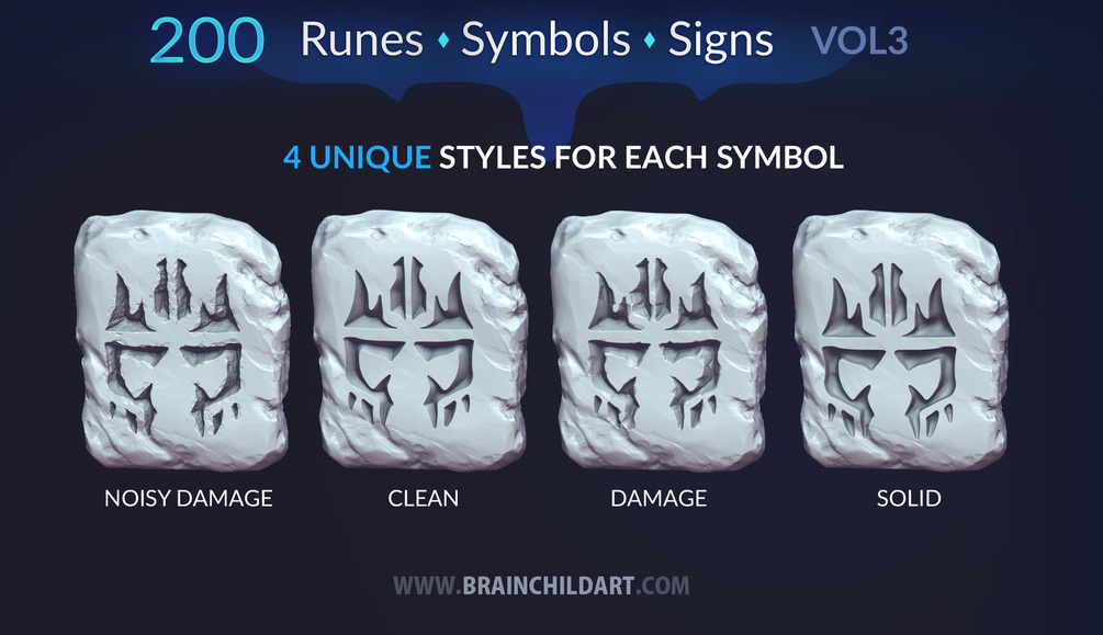 VOL. 3 - 200 Runes, Signs & Symbols (800 Alpha Textures) Zbrush, Blender, Substance..