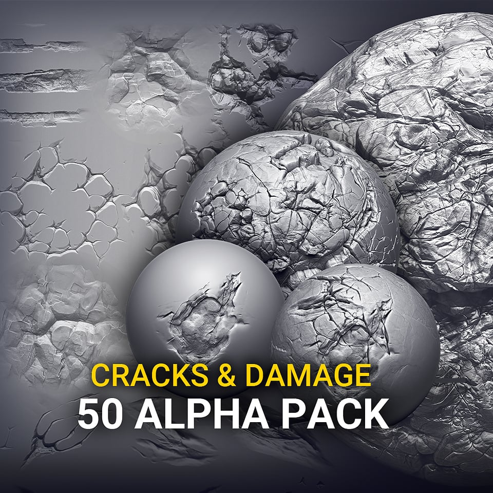 50 Cracks & Damage Alpha Textures - Zbrush / Blender / Substance (4k, 16bit)