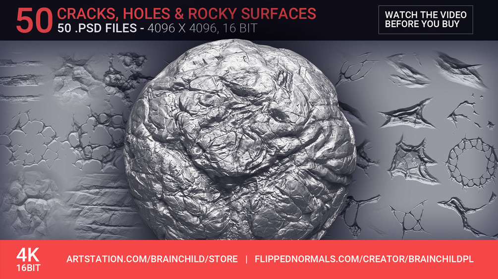 VOL. 2 - 50 Cracks & Damage Alpha Textures - Zbrush / Blender / Substance (4k, 16bit)